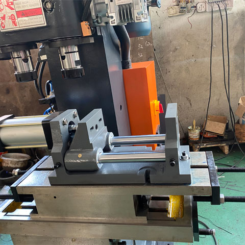 Aynı anda iki deliği işleyen bir sıkıştırma, 170 mm'lik maksimum işleme deliği mesafesi (210 mm'lik işleme gibi özelleştirilmesi gerekir), işlem akışı: İlk deliği delin - tabla silindiri sola doğru hareket eder - ikinci deliği delin - silindiri kaydırın sola doğru hareket ettirin - silindiri sağa kaydırın - ikinci dişe hafifçe vurun - tabla silindiri matkap miline hareket ettirin (yerine geri getirin) - kelepçeleyin - tekrar döngü yapın.